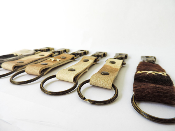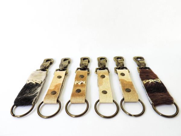 Llaveros hechos artesanalmente con cuero crudo o cuero con pelo. Ideales para regalos o pára uso personal. ¡Escribinos para elegir el tuyo!